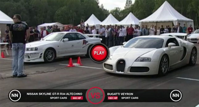 Bugatii Veyron 16. 4 vs Nissan Syline GT - R R34 Altechno. |